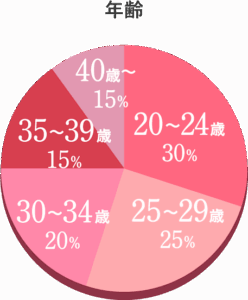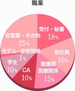 クラブアンジュ横浜には、20代〜40代と幅広い年齢の女性が在籍しています。在籍している女性は、OLからタレントまで様々な職業・ライフスタイルを持つ方が中心です。